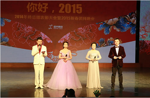 2015年2月9日晚,在蘭州37中(蘭州女子專業(yè)中等專科學(xué)校)5樓藝術(shù)廳內(nèi),國芳集團“你好,2015”2014年終總結(jié)表彰大會暨2015年新年盛典溫馨開演。恰逢國芳集團成立十五周年,晚會現(xiàn)場充滿了溫馨、喜慶和感動。晚會延用了去年的大型LED顯示屏、多組VCR、微信平臺等廣受好評的元素,并創(chuàng)新的融入了中華名族傳統(tǒng)的禮儀文化,漢唐古典舞的壯觀優(yōu)美,員工孩子們《弟子規(guī)》的可愛表演,都在為晚會添加了精彩度的同時,將傳承禮儀所需要的高尚美德這一思想深入的傳達到每一位員工的心中。員工們精心準備的節(jié)目一個比一個精彩,極具藝術(shù)表現(xiàn)力和觀賞性,董事長也被熱烈的氣氛所感染,親自上臺演唱了兩首歌曲,把晚會推向了高潮。最后,國芳集團年終晚會在祥和熱烈的氣氛中落下了帷幕。讓我們共同期待來年的精彩!