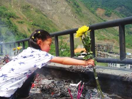 截至昨天下午6點(diǎn),近5萬北川人,回到老縣城,通過放鞭炮,獻(xiàn)鮮花,燒紙錢等方式,祭奠長眠于老縣城廢墟下的親人。