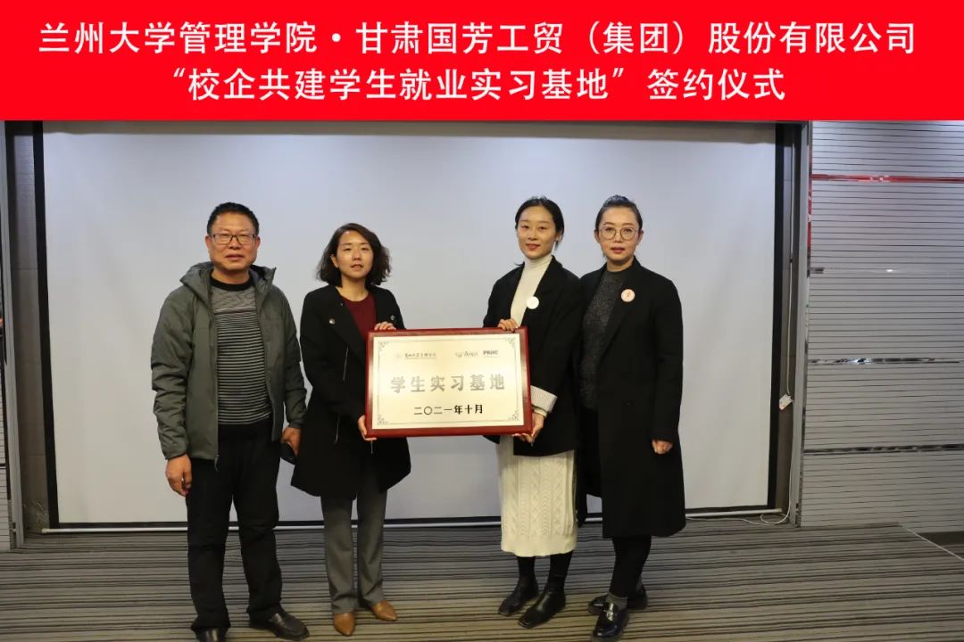 “校企合作,同道同行”,2021年10月15日上午,我司與蘭州大學(xué)管理學(xué)院舉行“校企共建學(xué)生就業(yè)實(shí)習(xí)基地”簽約儀式 ,在國芳寫字樓十五樓會議室舉行。國芳集團(tuán)總經(jīng)理張輝女士、國芳集團(tuán)總裁助理、人力資源總監(jiān)孟麗女士,蘭州大學(xué)管理學(xué)院黨委副書記李艷霞,蘭州大學(xué)管理學(xué)院團(tuán)委書記魯靜,蘭州大學(xué)管理學(xué)院教師代表王懷詩,蘭州大學(xué)管理學(xué)院校友秘書易芊汝,以及國芳集團(tuán)員工代表們出席了簽約授牌儀式。