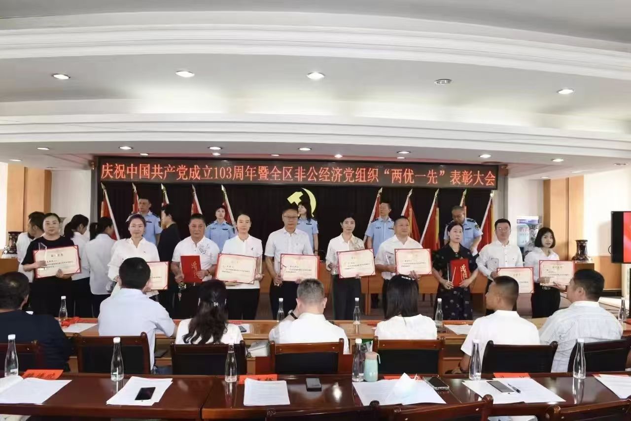 2024 年7月9日上午,“中共蘭州市城關(guān)區(qū)非公有制經(jīng)濟(jì)組織委員會(huì)紀(jì)念建黨 103 周年暨兩優(yōu)一先表彰大會(huì)”在城關(guān)區(qū)市場(chǎng)監(jiān)督管理局十樓隆重召開。